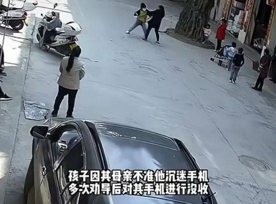 原来,男孩是因为要求母亲给他买手机,但被母亲拒绝,才发生了如此一幕。