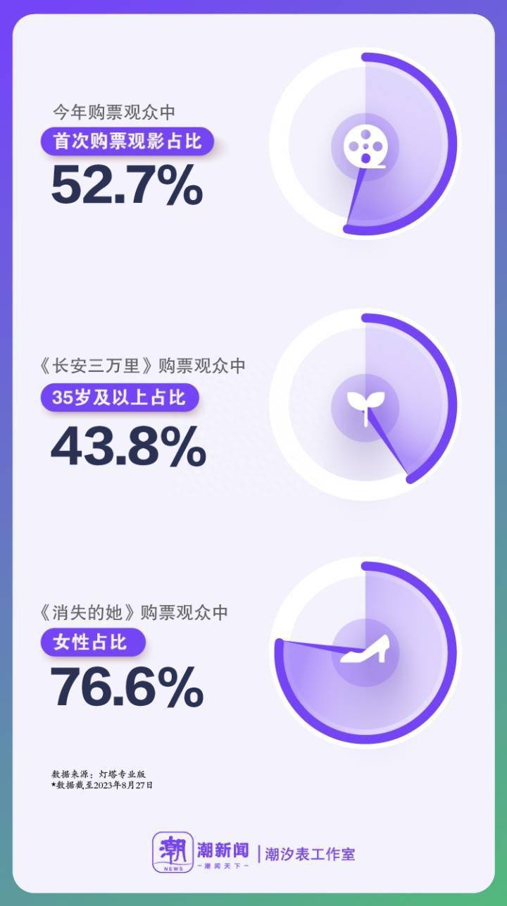 灯塔专业版数据显示,2023暑期档观影总人次超4.84亿,52.7%的观众是今年第一次走进电影院,大量观众被“召回”。同时,年观影量达5次以上的资深影迷占比也明显提升。