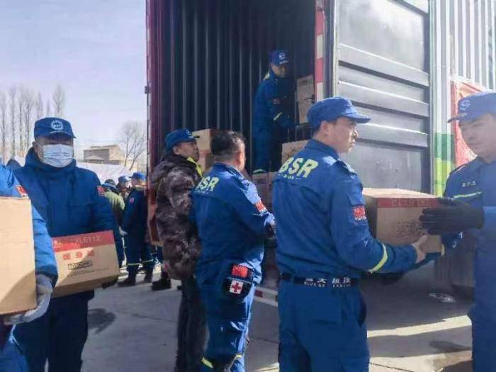 19日凌晨4点多,距离地震发生大约3个小时,甘肃蓝天救援队抵达大河家镇,随即投入多股力量对受灾区域进行两次排查。6点,第一批救灾物资到达受灾较重的甘肃临夏积石山县大河家镇,为房屋受损群众提供临时安置。据甘肃蓝天救援方面的消息,截至目前,抵达一线参与本次积石山地震救援工作的蓝天救援力量已达233人。截至2023年12月20日13:30,受灾群众转运达到800余人,救助被困群众7人,搭建帐篷110顶,转运物资2000余件。