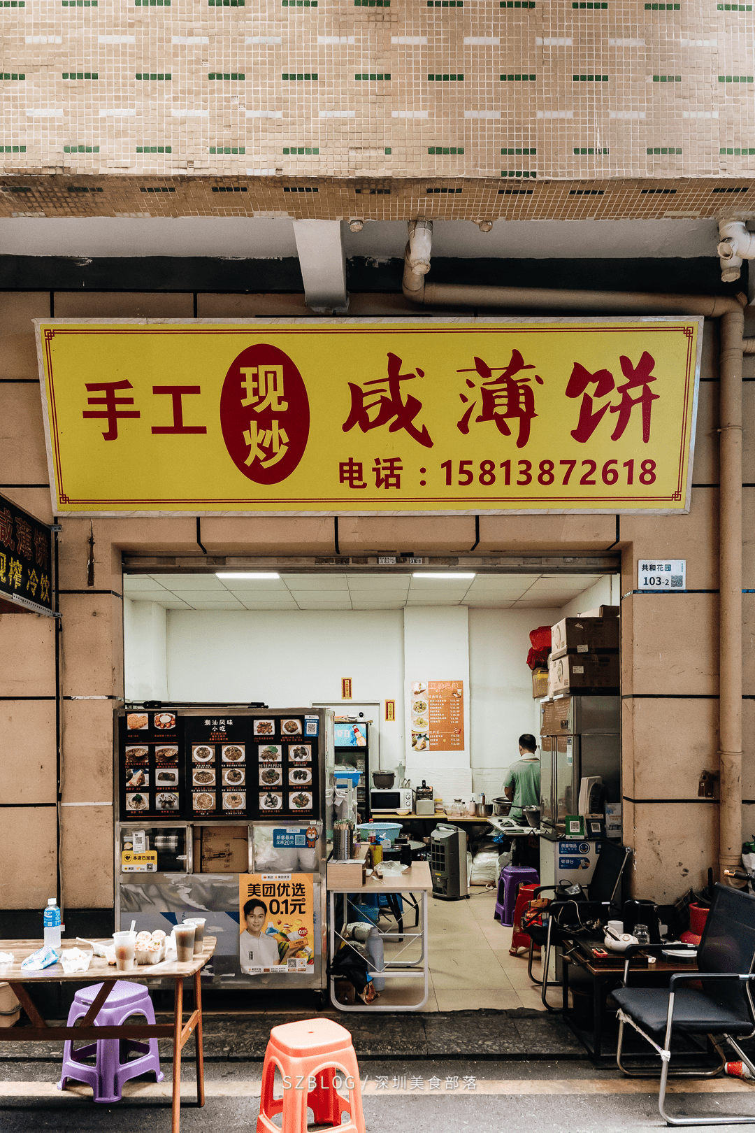 这家开在龙华的小店,就藏在共和花园的小巷里,若不是专门导航,还真难发现。店里主卖咸薄饼和炒粉炒饭炒粿条,加上一些潮汕的小吃。小店目前不做堂食,都是做外卖单和外带。