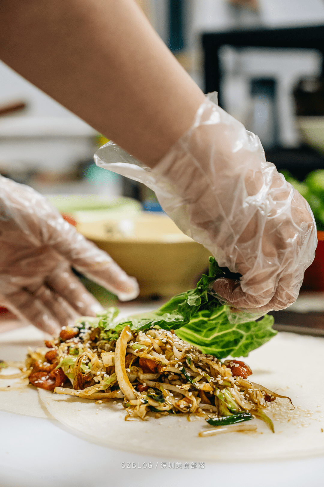 蔡伯:“外卖时间长没办法,只能面皮做厚些防止泡烂了。”